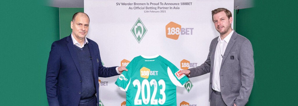 Nigel Singer, Managing Director 188BET menambahkan: “Hari ini, 188BET mengumumkan kemitraan barunya dengan Klub Sepak Bola Bundesliga Werder Bremen untuk pasar Asia. Di 188BET, kami menyadari pentingnya sepak bola bagi konsumen kami, khususnya yang tertarik pada Bundesliga. Selama 2 tahun ke depan, 188BET mengharapkan kemitraan yang sukses dengan Werder Bremen.”